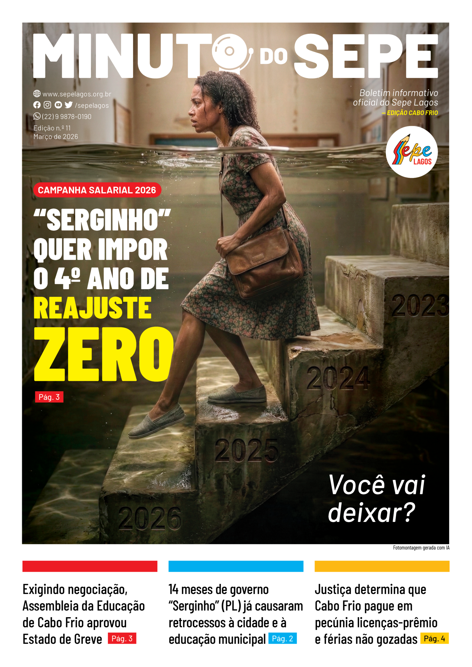 A edição nº 11 do boletim Minuto do Sepe, do Sepe Lagos, já está disponível e traz informações importantes sobre a luta dos profissionais da educação de Cabo Frio.
