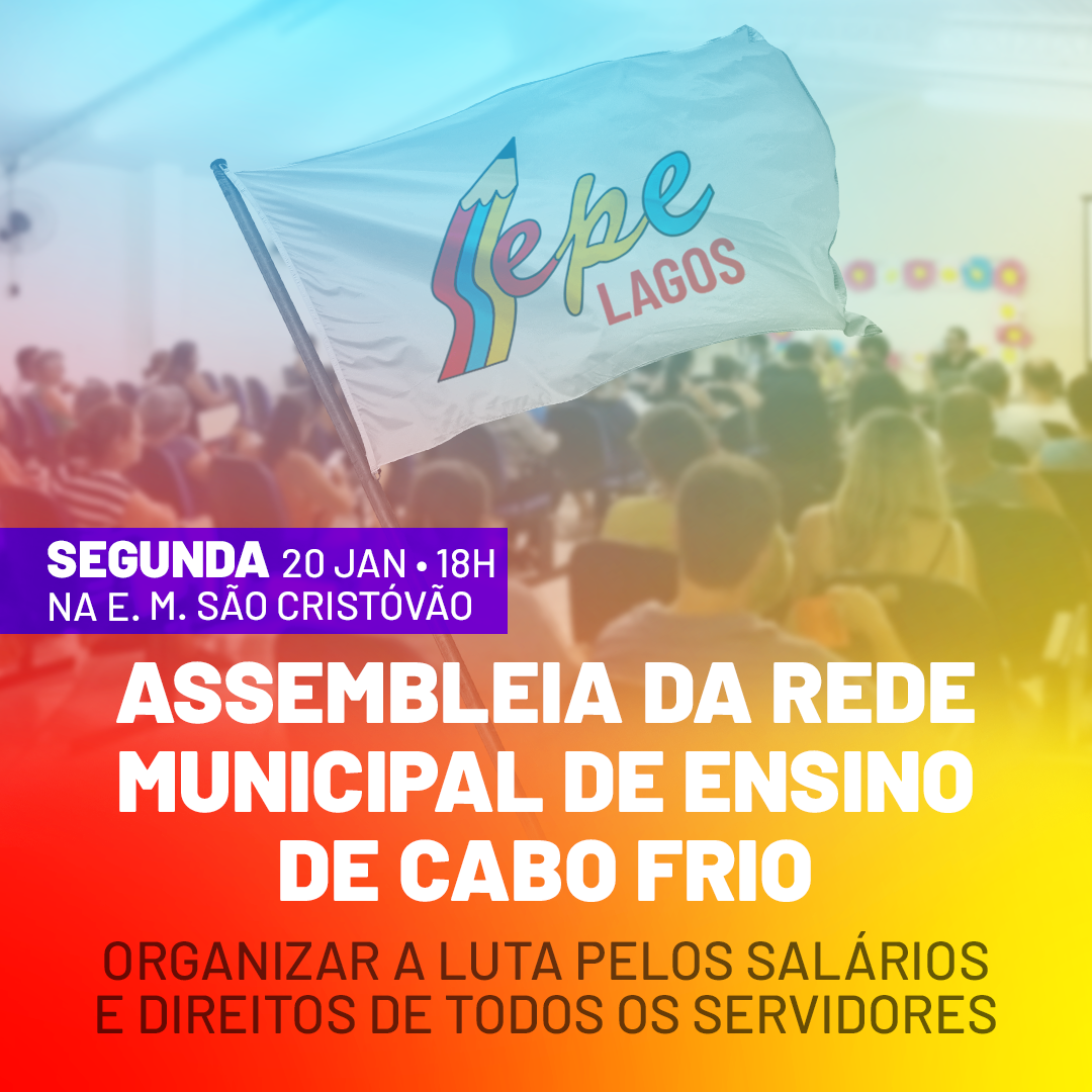 Agora precisamos manter a mobilização e garantir a presença de máximo de trabalhadores possível na próxima assembleia da rede municipal de Cabo Frio que será realizada no dia 20 de janeiro. É preciso estar presente, pois será olhando olho no olho que vamos decidir os rumos do nosso movimento e organizar as próximas ações da categoria para forçar o prefeito Adriano e seus secretários cúmplices a cumprirem a lei e pagarem todos os servidores da educação. E não se esqueça: não caia em fake news, acompanhe a luta por meio dos nossos canais oficiais de comunicação.