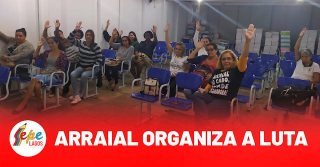 Nesta quarta-feira (12/02), o Sepe Lagos realizou a primeira assembleia da rede municipal de Arraial do Cabo neste ano de 2020. A categoria debateu sofre a situação dos trabalhadores da educação do município e foram dados vários informes, sendo um dos principais a necessidade de adesão à Greve Nacional da Educação que foi convocada pela Confederação Nacional dos Trabalhadores em Educação (CNTE) para o dia 18 de março, quarta-feira, e que reunirá trabalhadores do setor em todo o Brasil. O Sepe-RJ está aderindo à greve em todo o estado do Rio de Janeiro. Além disso, os trabalhadores em educação de Arraial votaram uma agenda de ações em defesa dos direitos da categoria, como a defesa do direito a 1/3 da jornada destinada ao planejamento das aulas, a extrapolação constante da jornada de trabalho semanal de trabalho, a luta por reajuste salarial, a defesa do respeito ao piso salarial do magistério, dentre outras questões.