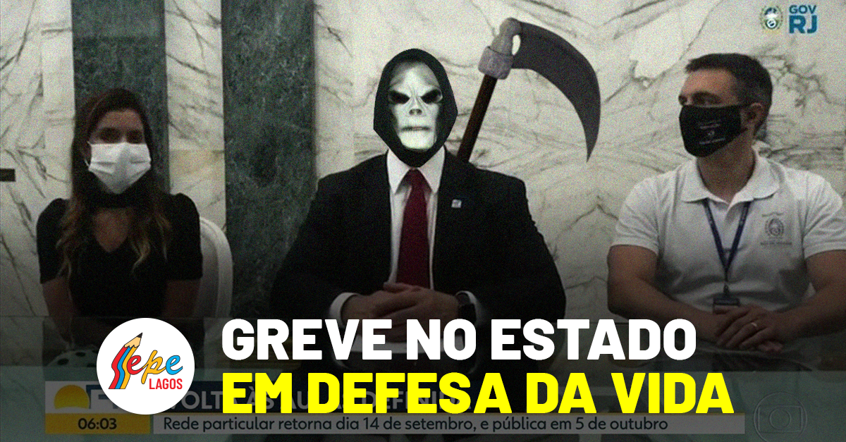 “Em plena pandemia, Greve em defesa da vida devido à reabertura das escolas para a volta das atividades presenciais dos profissionais da educação. Professores e funcionários entrarão em greve à medida que forem convocados para o retorno das atividades escolares presenciais.”