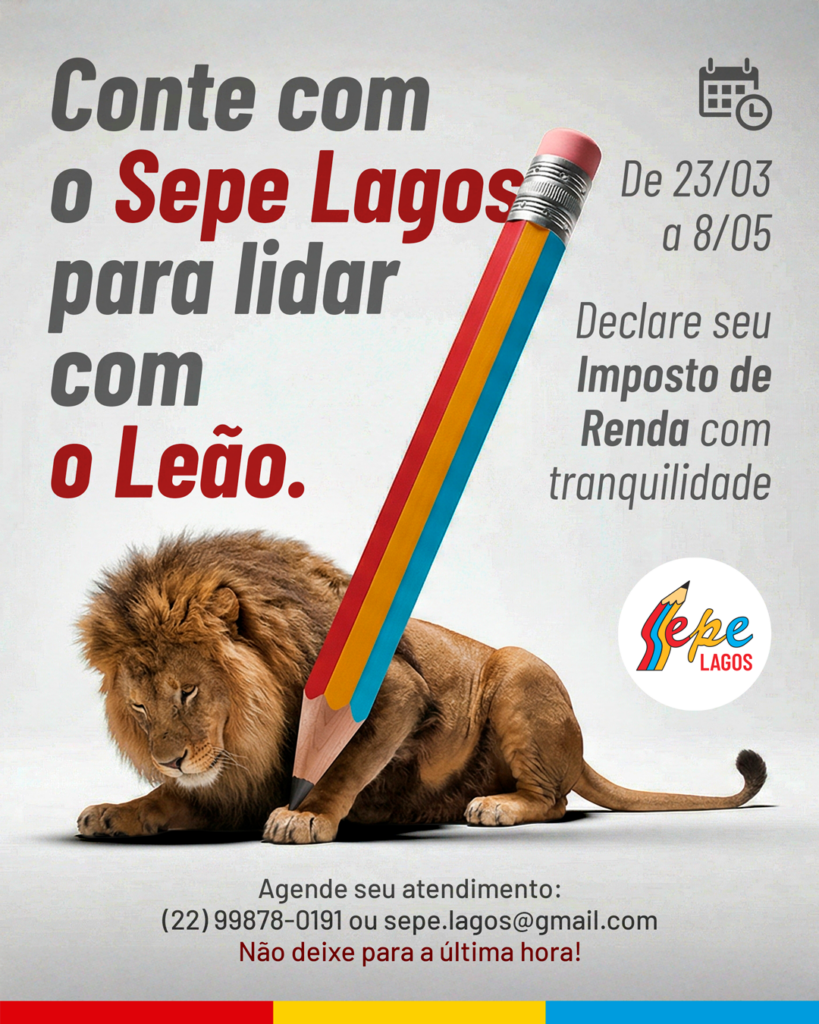 O Sepe Lagos inicia, neste mês, mais uma edição do serviço gratuito de assessoria contábil para a declaração do Imposto de Renda Pessoa Física (IRPF) 2026, referente ao ano-calendário 2025. O atendimento é exclusivo para filiados e tem como objetivo garantir que os profissionais da educação cumpram suas obrigações fiscais com segurança, evitando erros, multas e dores de cabeça.